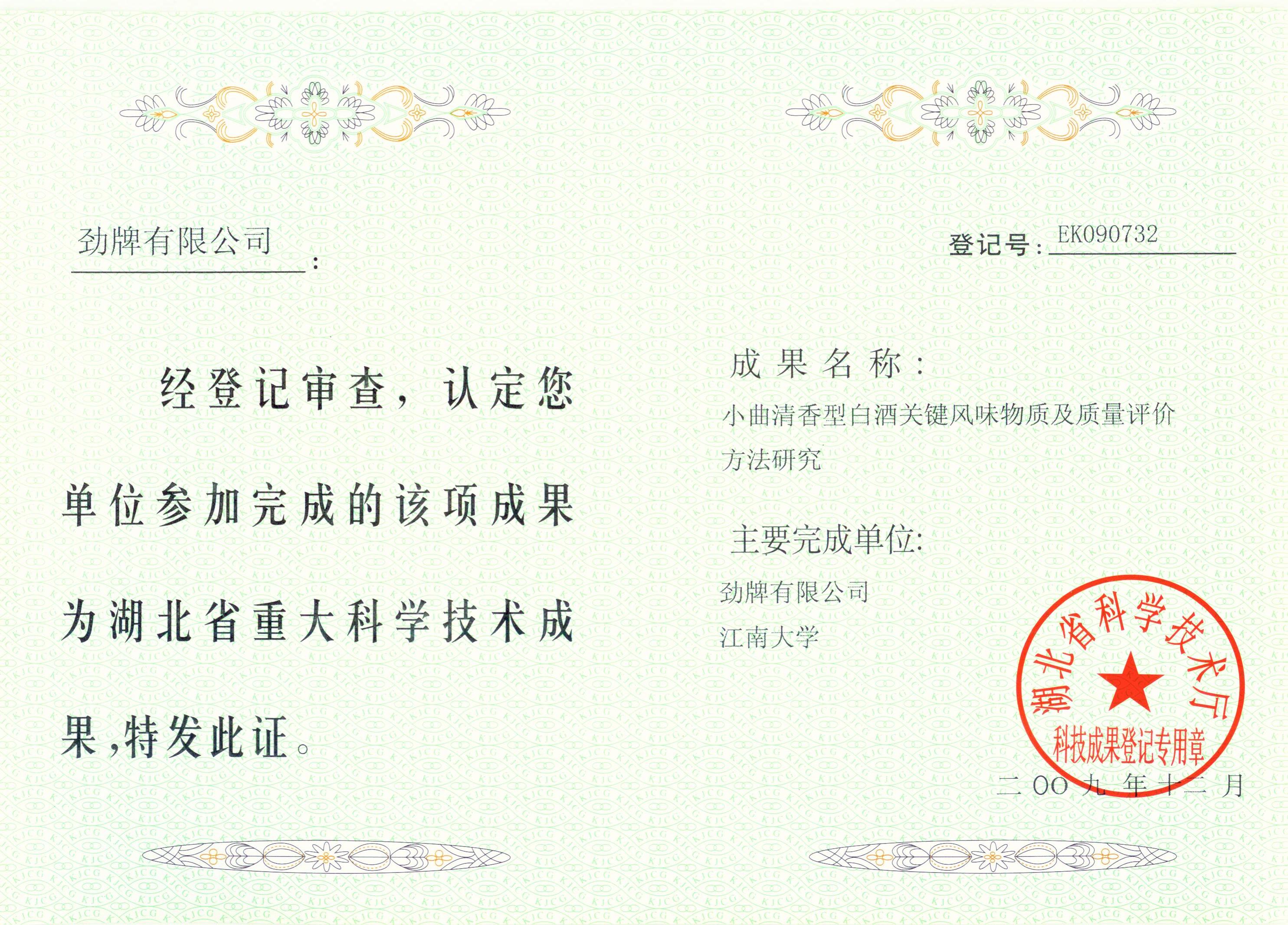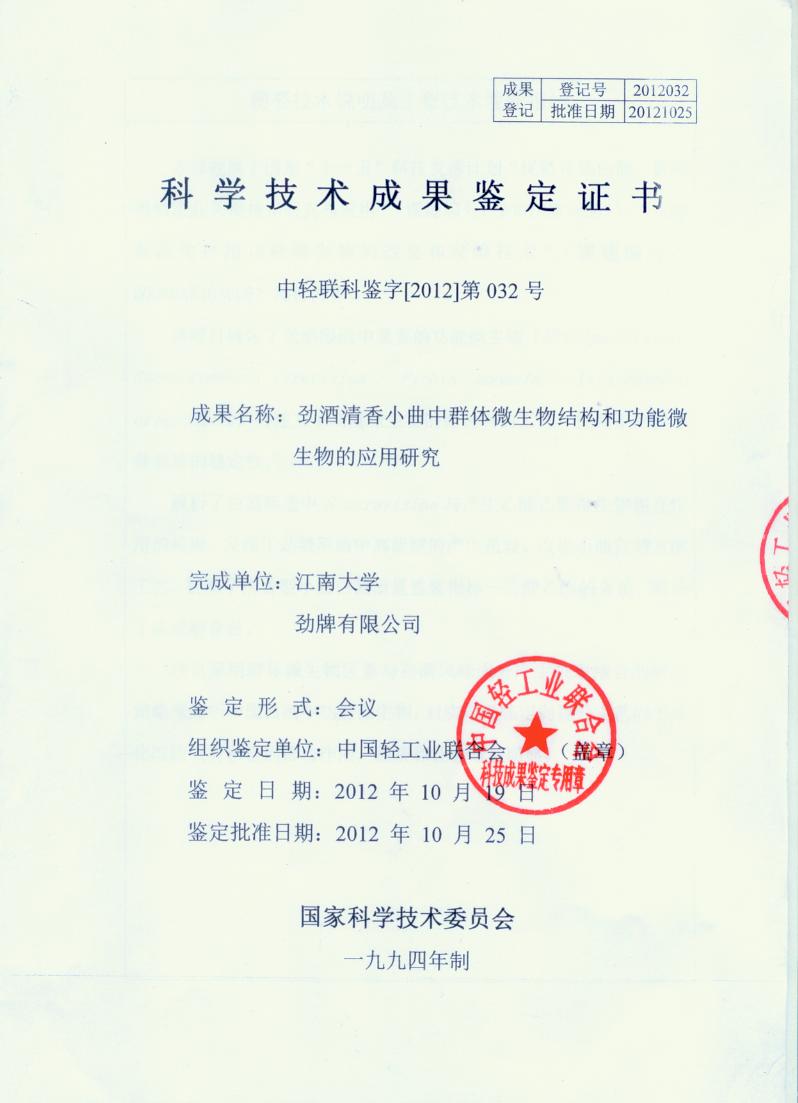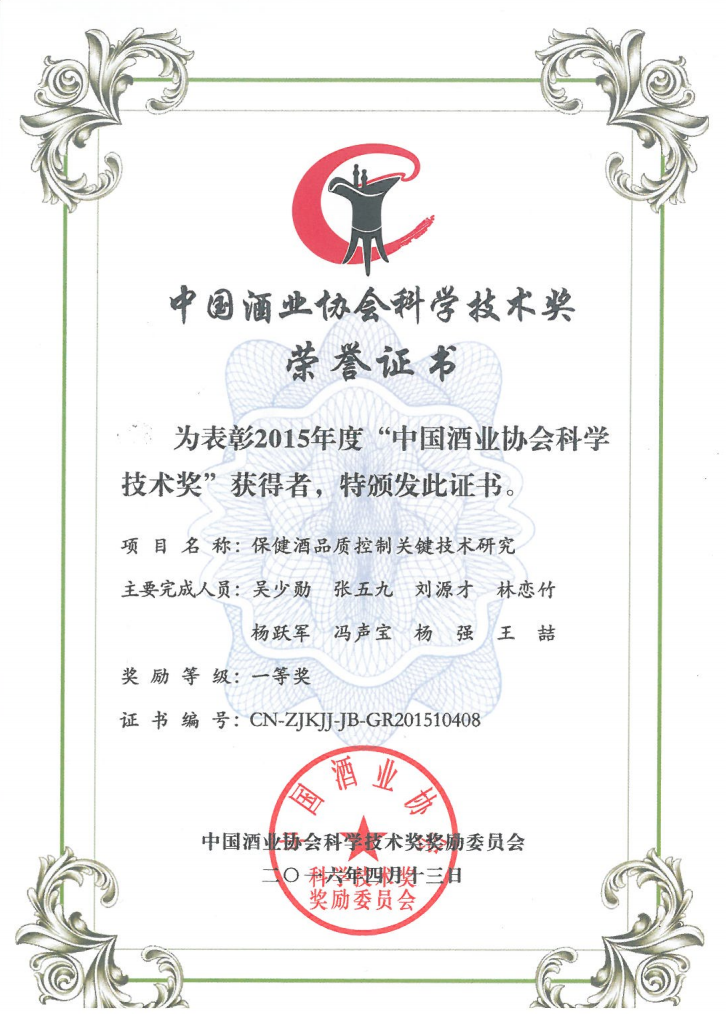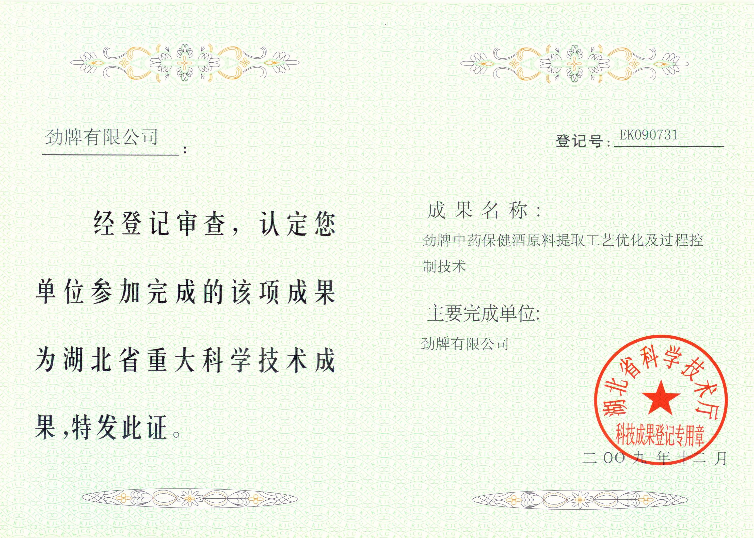 近年來,公司圍繞保健酒、草本白酒和中草藥新產(chǎn)品研發(fā)、產(chǎn)品改進(jìn)和基礎(chǔ)應(yīng)用技術(shù),在中藥數(shù)字化提取、小曲酒釀造新工藝、中藥指紋圖譜等核心技術(shù)方面擁有自主知識產(chǎn)權(quán),通過行業(yè)協(xié)會等鑒定機(jī)構(gòu)技術(shù)評估22項(xiàng),其中15項(xiàng)成果鑒定為“國際領(lǐng)先”水平,7項(xiàng)成果鑒定為“國際先進(jìn)”水平。